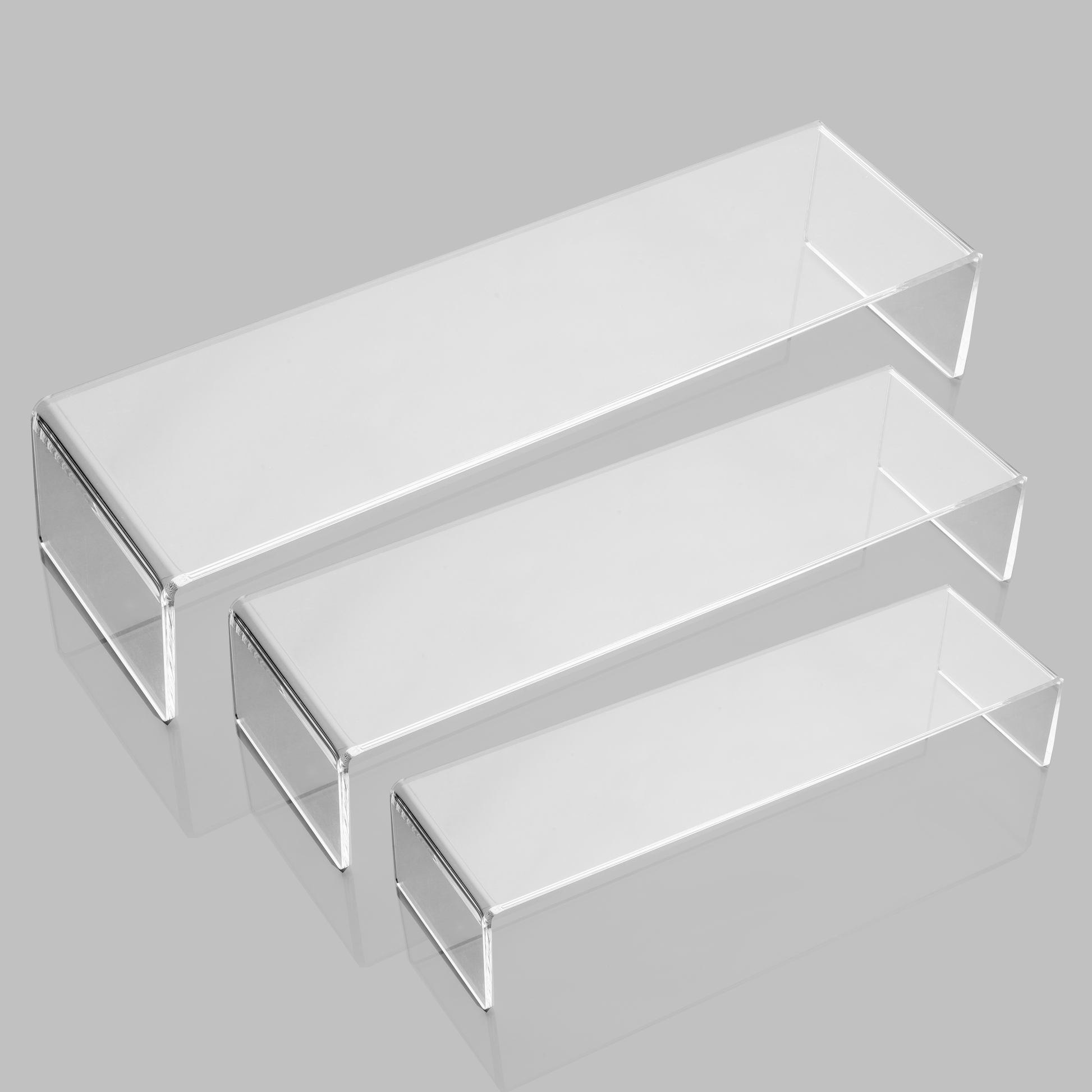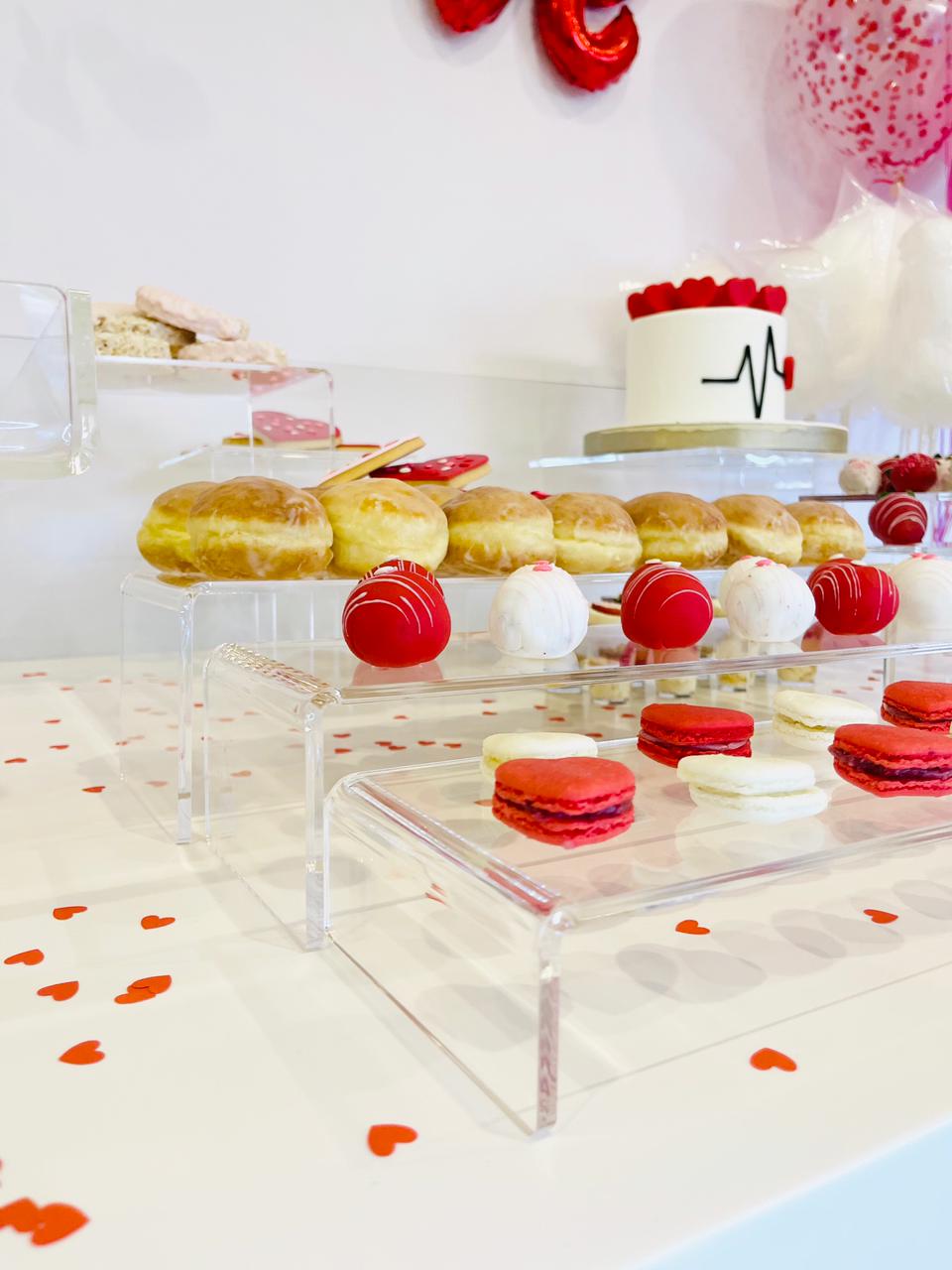 Upgrade your display with this set of 3 acrylic U-shape food risers. Perfect for storage and decoration, each riser offers a sleek, clear design that elegantly showcases food, decor, or products. Varying sizes create dynamic, tiered displays, ideal for buffets, dessert tables, or retail use. Durable, easy to clean, and versatile, these risers add a modern touch to any setting