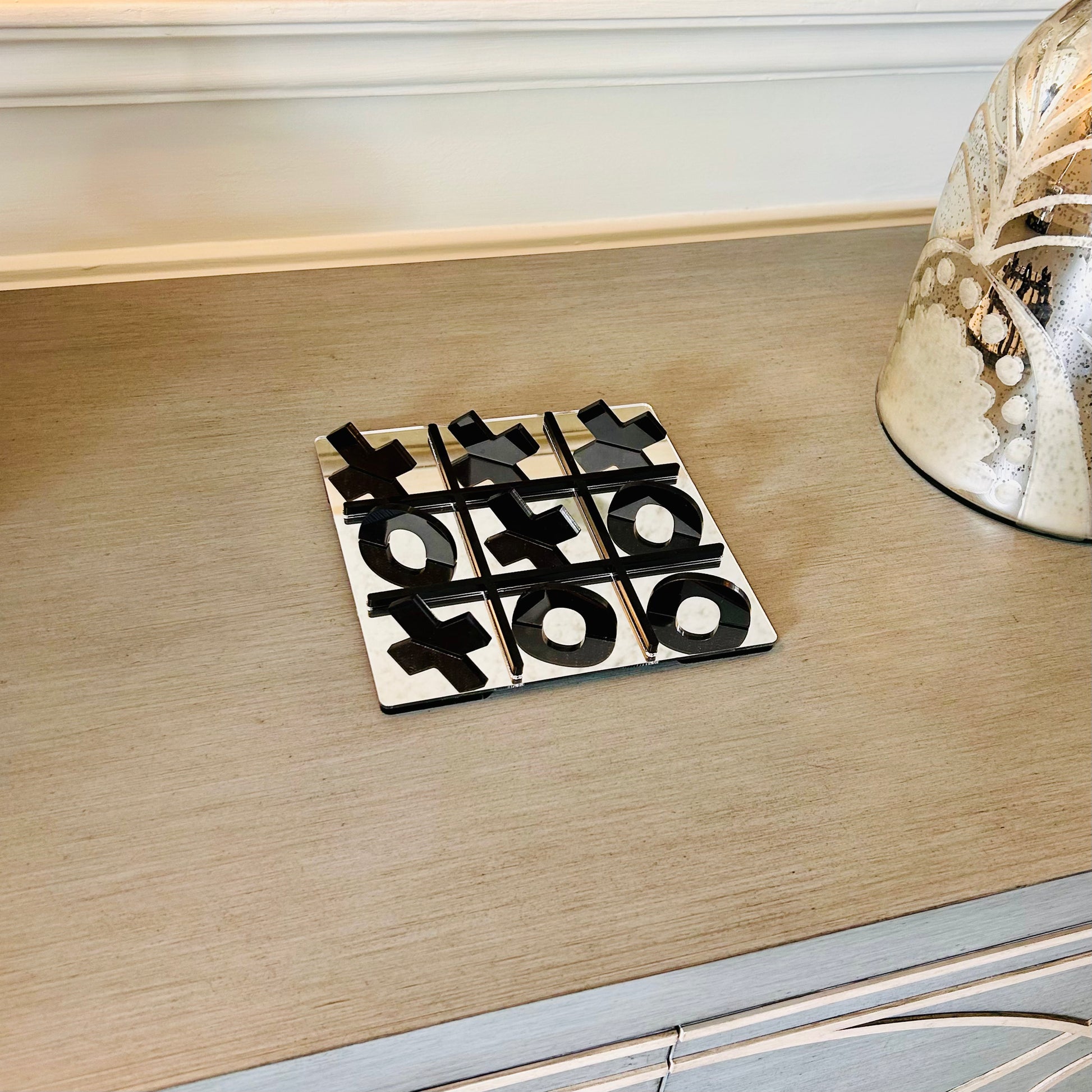 Enjoy a stylish twist on a classic with this XO game board, crafted from silver and black acrylic. The sleek design adds a modern, luxurious feel to your gaming experience, making it perfect for both play and display. Durable and elegant, this board is a stunning addition to any game collection.
